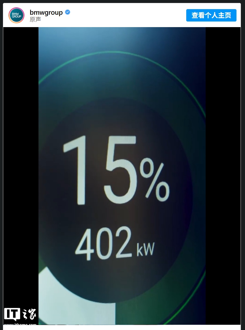 在宝马最近发布的一段视频中,可以看到即将推出的 iX3 的一款伪装原型车充电速度峰值达到 402 千瓦。